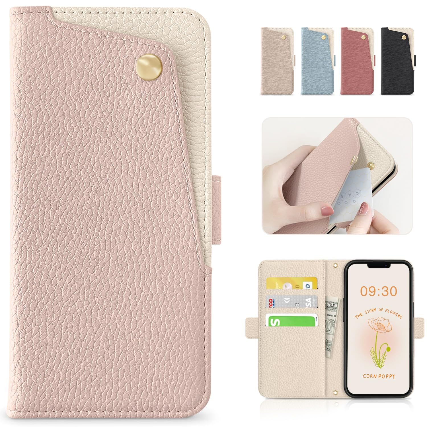AliExpress カラーブロックレザーレディース携帯電話レザーケースファッションライチパターンリストストラップカード iPhone 保護ケース