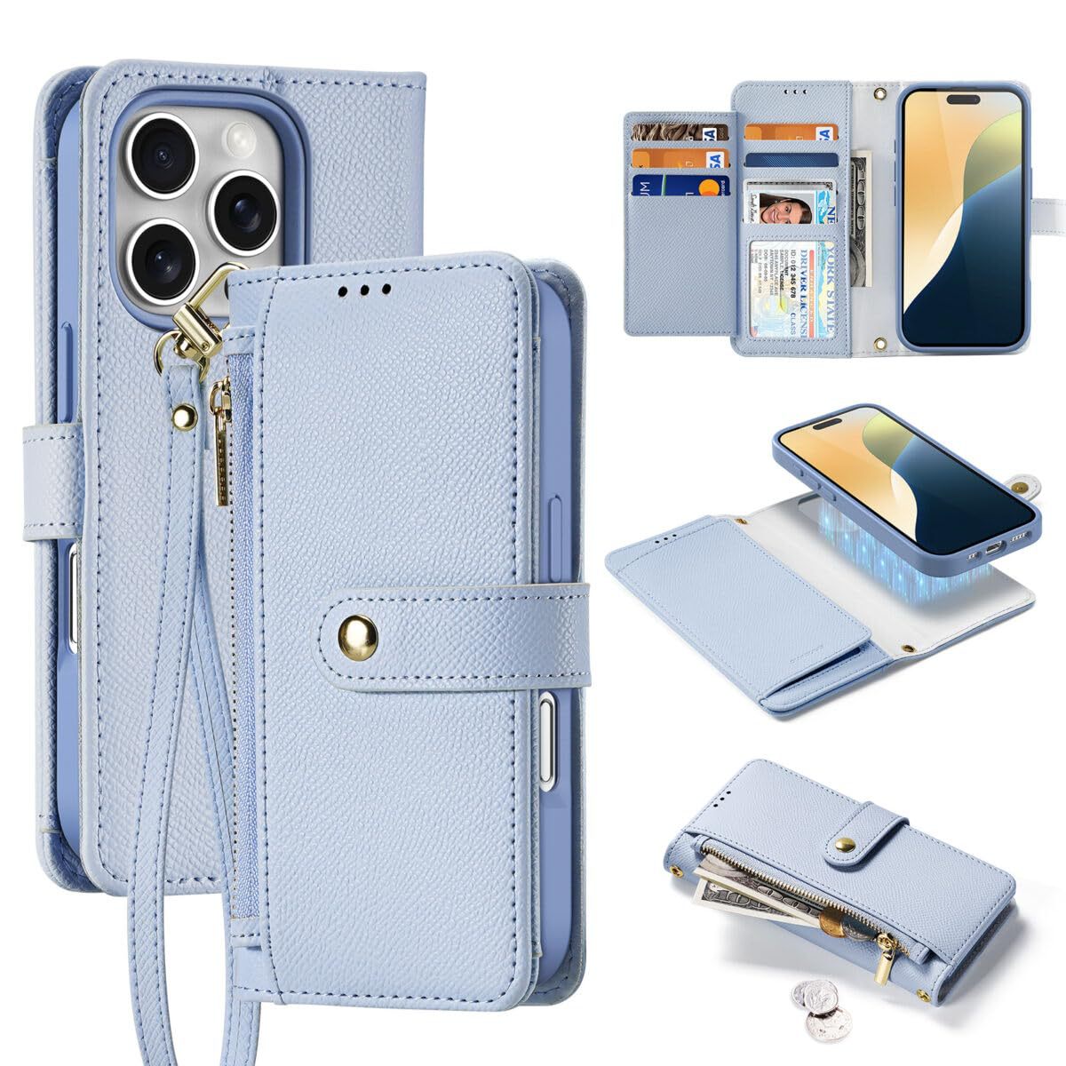 日本と韓国の牛革リストストラップジッパー財布携帯電話ケース革新的な多機能カード挿入iPhone保護カバー