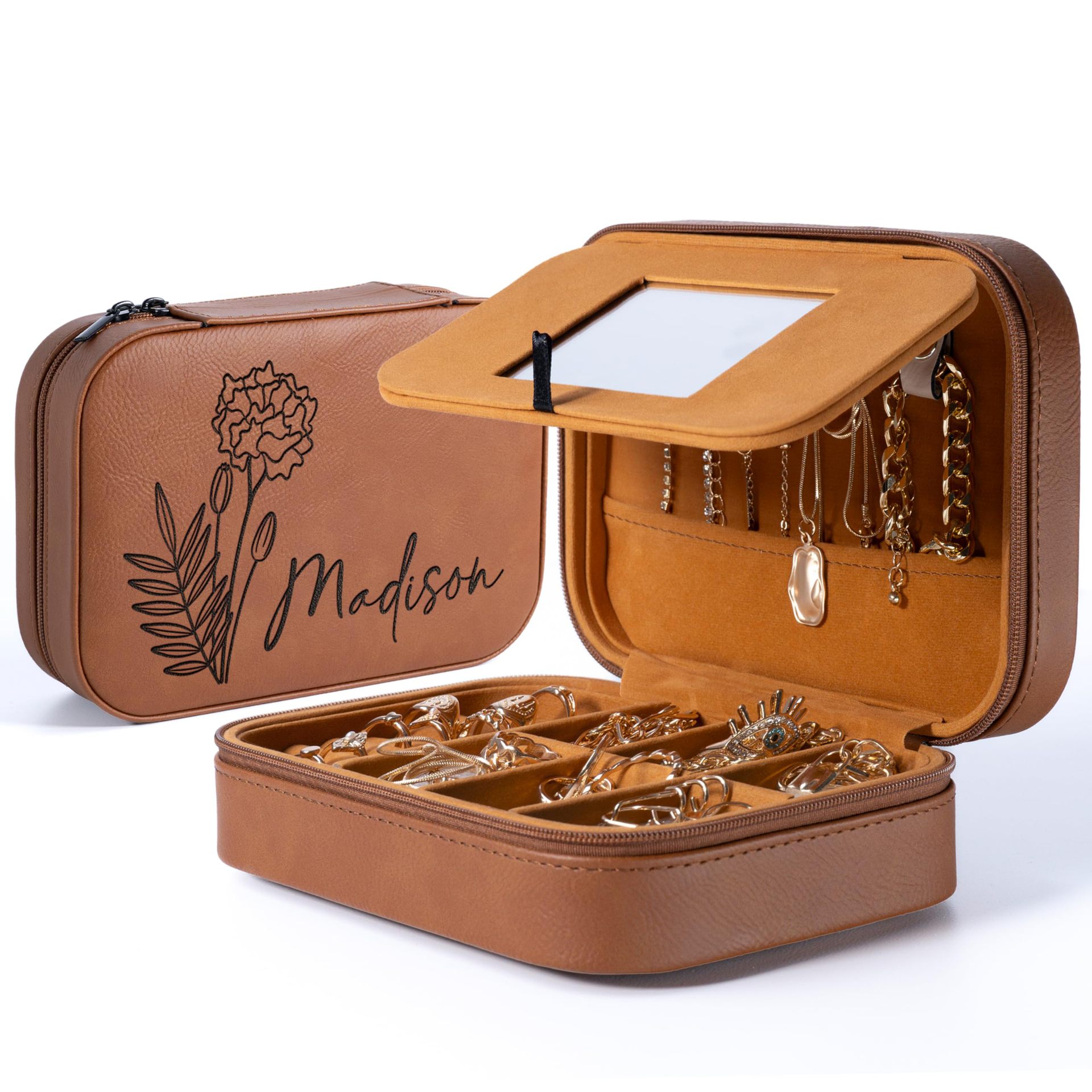 国境を越えた売れ筋レザープリントミラー付きレディースジュエリーボックス外出用PUスクエアジュエリー収納ボックス