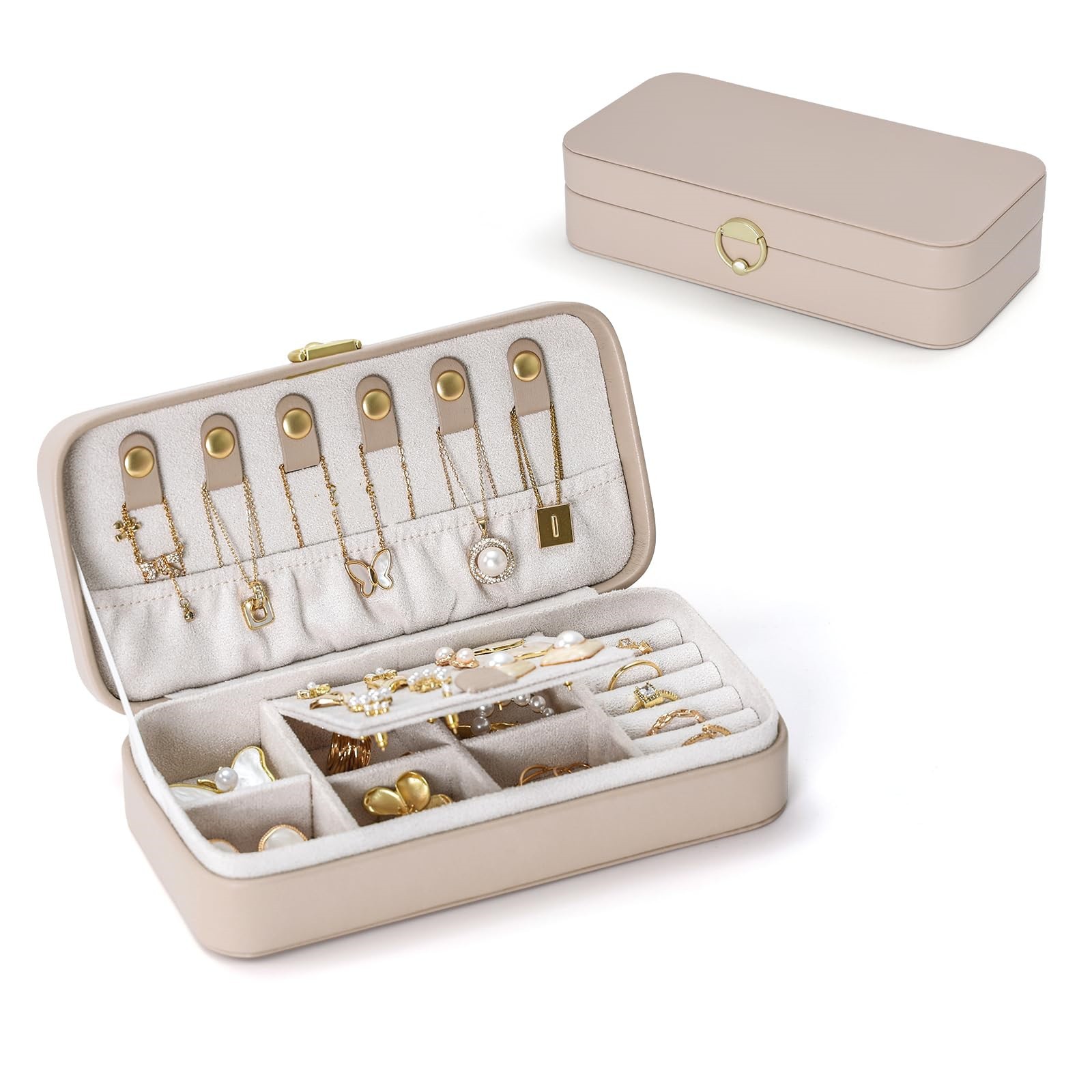 クロスボーダーレザーポータブルラウンドレディースジュエリーボックスポータブルジュエリー収納ボックスリングネックレス防塵整理ボックス