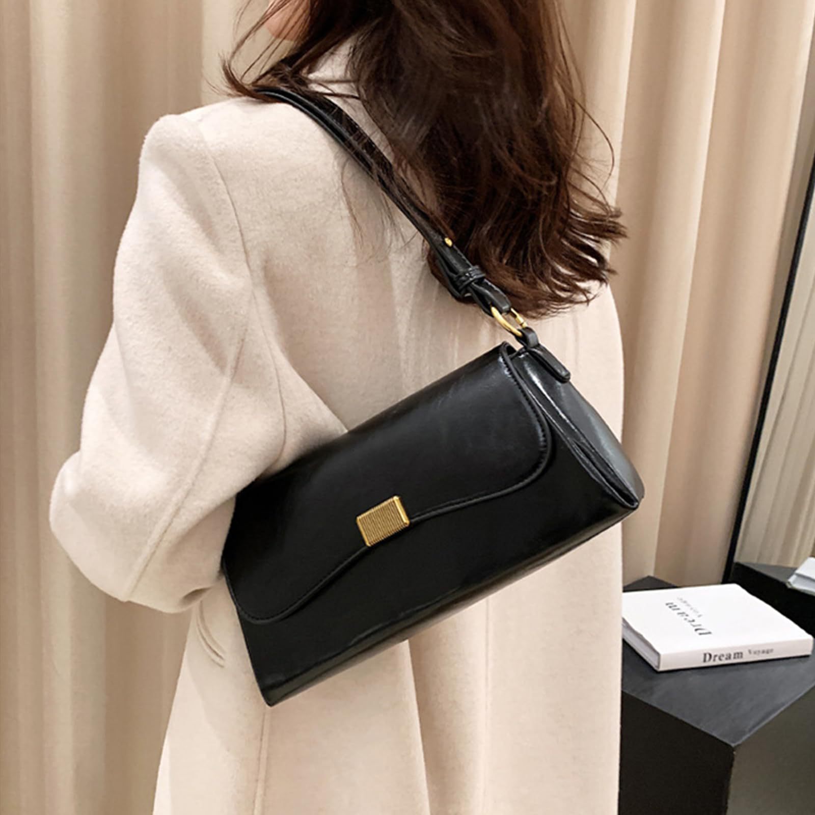 クロスボーダーレザーレディース脇の下ショルダーバッグハーフムーンバッグシンプルな牛革多機能斜め餃子バッグトートバッグ