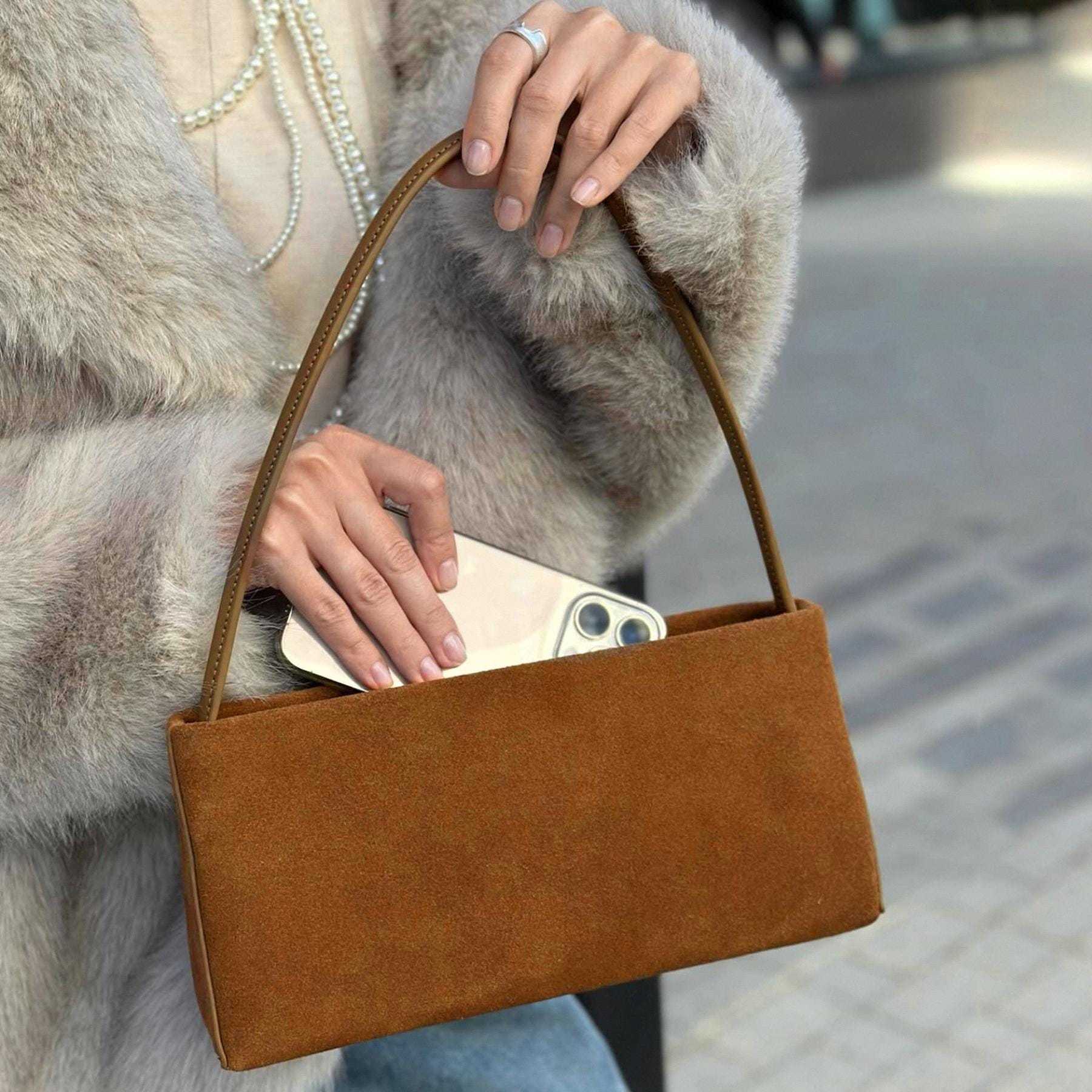 日本と韓国のフロストスエードレディースハンドバッグ枕バッグレトロ大容量レザーショルダーバッグ通勤トートバッグ