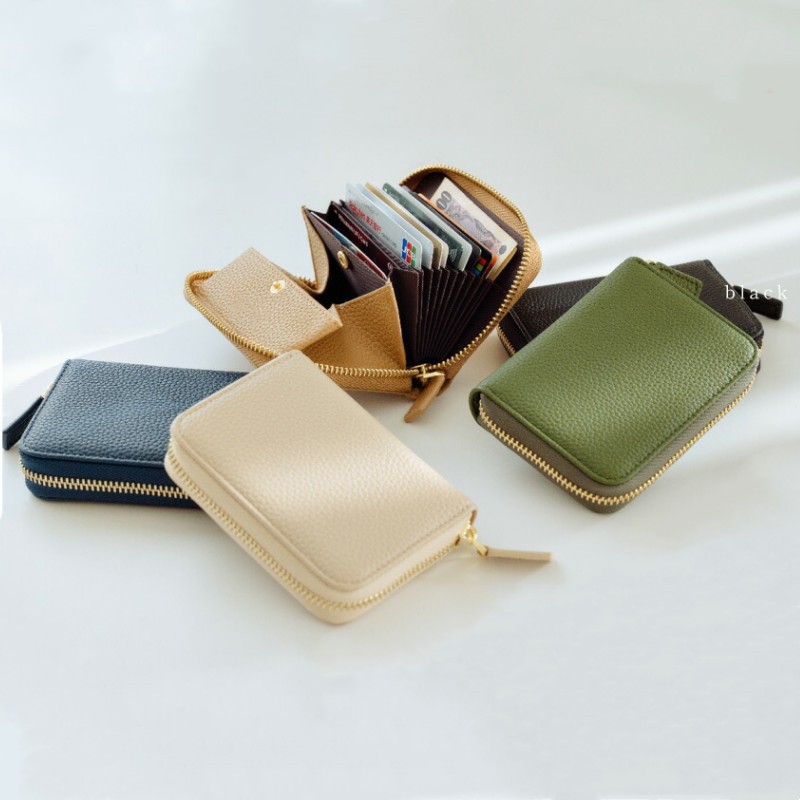 日本と韓国のペブルドレザーの女性用カードホルダー、ソリッドカラーのマルチカードスロット、コイン収納バッグ、オルガンバッグ