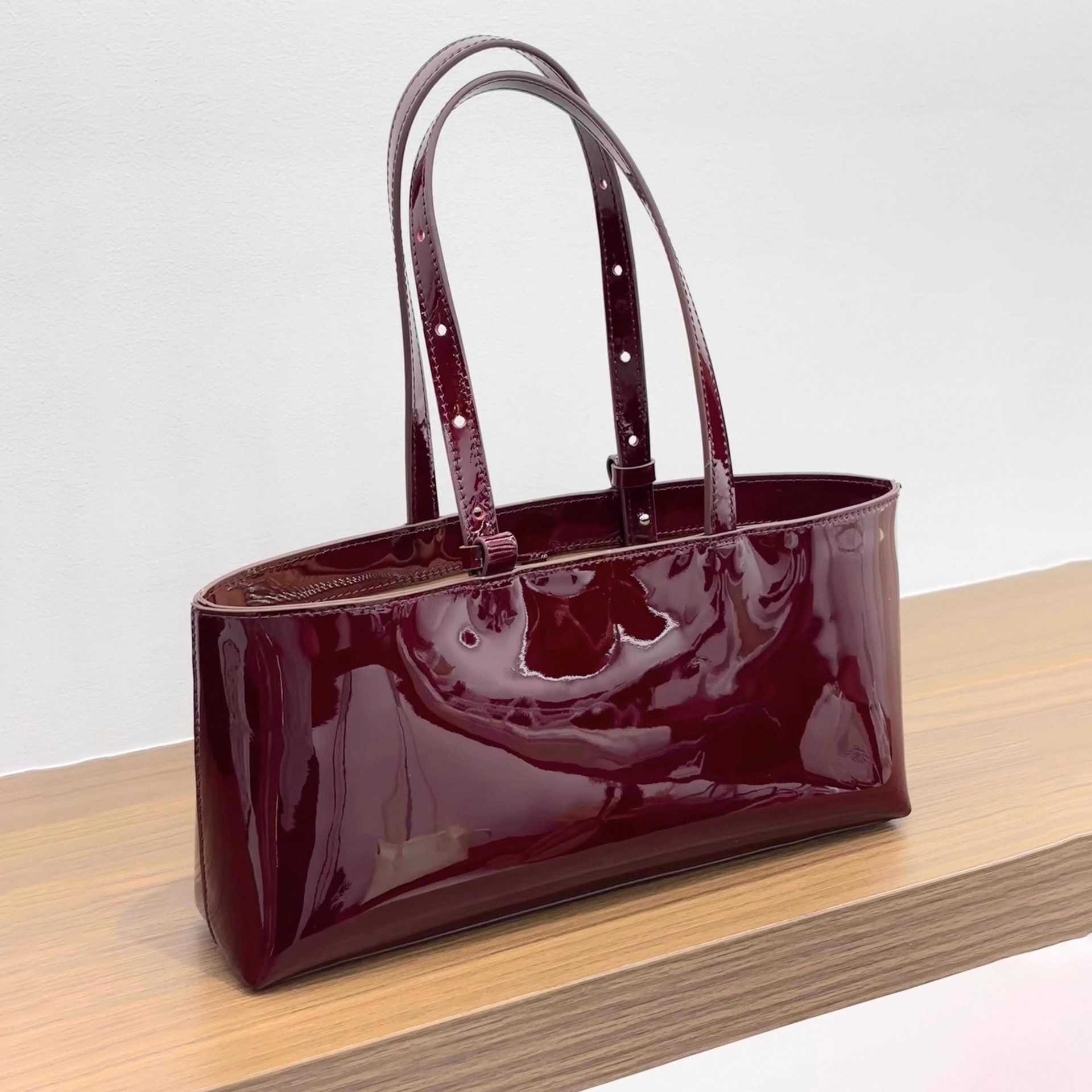 韓国風オープンエッジビーズレザーハンドバッグ小さなスクエアバッグ女性の多用途大容量パテントレザーショルダーハンドヘルド脇の下バッグ