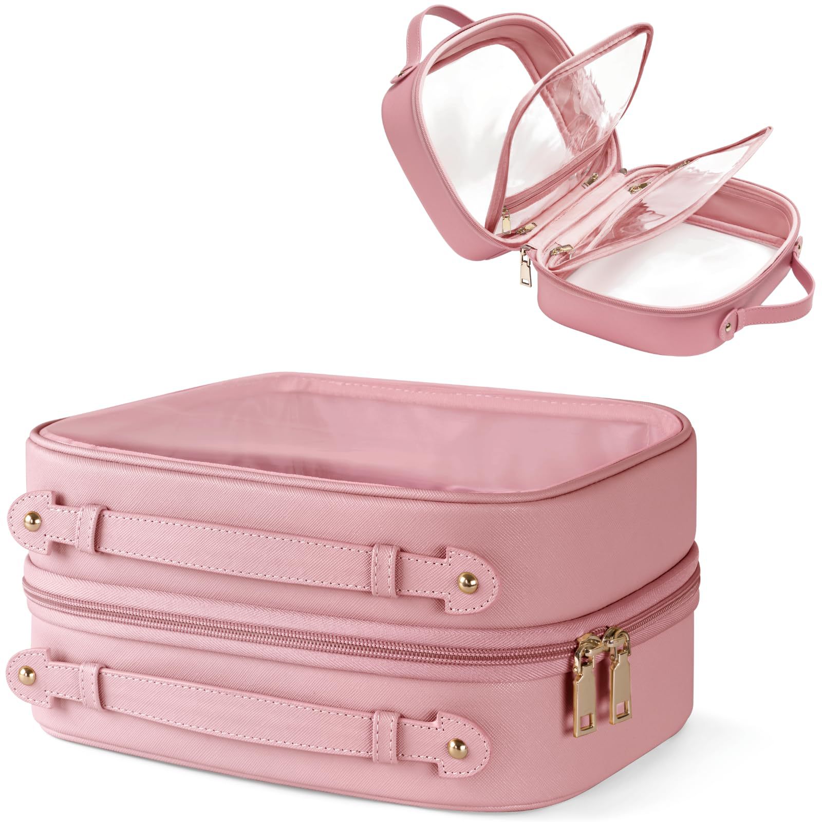 2025新品PUレザー取り外し可能仕切り洗面バッグラウンド型出張手提げ収納バッグレディース化粧バッグ