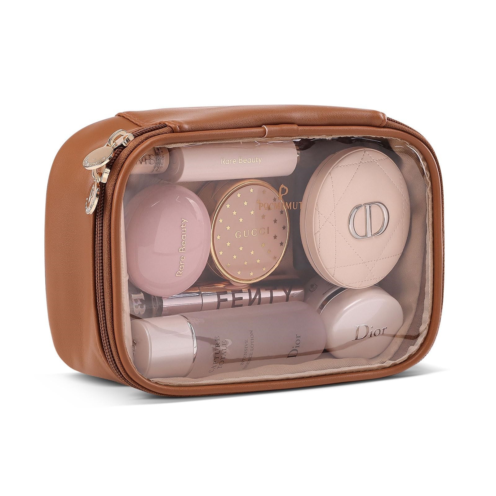 Amazon PUレザー透明ポーチ旅行洗面バッグ外出防水収納可能洗面整理バッグ