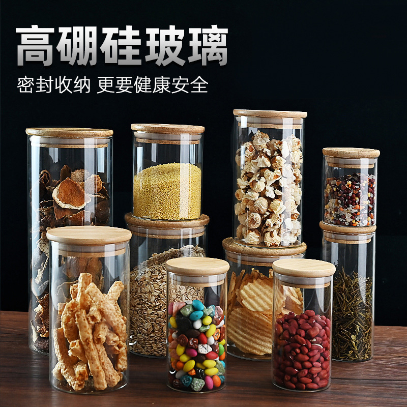 高ホウ素シリコン厨房用品透明ガラス密封缶五穀雑穀貯蔵缶収納缶コルク栓茶葉缶