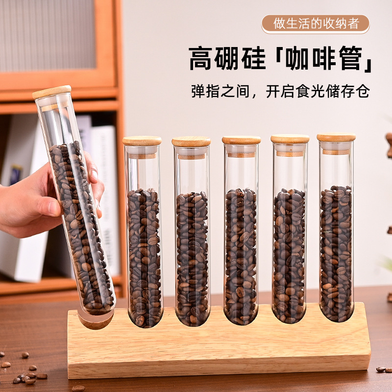 高ホウ素シリコンガラス試験管実木展示棚サンプル茶葉コーヒー豆厨房収納分類貯蔵タンク