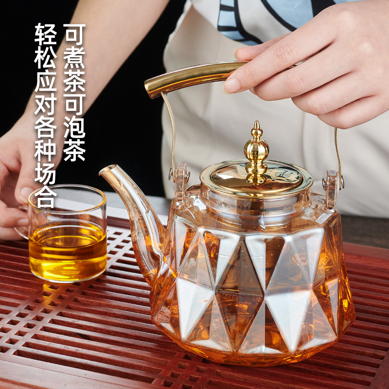 囲炉煮茶耐熱ガラス茶器花ティーポット草花ティーポットフィルター付き内胆精致小容量ティーポット