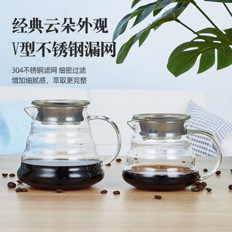 手沖コーヒーポットガラス雲コーヒー手沖共有ポット耐熱ガラス家庭用ステンレスフィルターコーヒーポット