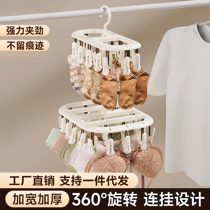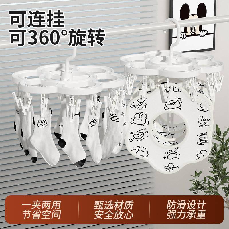 靴下干しハンガー多クリップ折り畳み回転ベランダ家庭用下着多機能穴なしハンガー神器