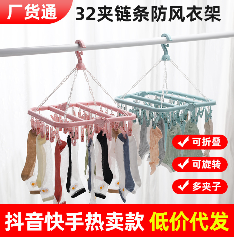 包郵便多機能折り畳み児童靴下フレーム防風プラスチック多クリップ成人内ハンガー出店ハンガー卸売り