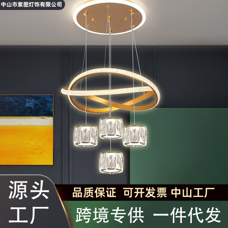 レストランシャンデリアモダンシンプルライト高級ダイニングルームダイニングテーブルバー階段4ヘッドクリスタルシャンデリア中山照明器具クロスボーダー