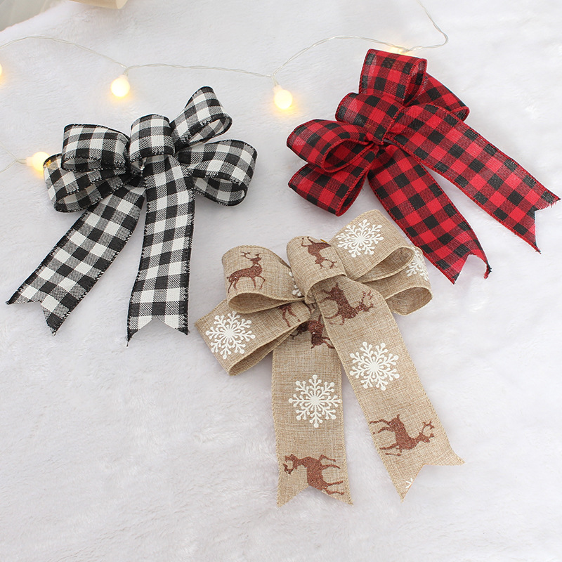 新しい麻布プリントヘラジカ蝶ネクタイ18*20cmクリスマスツリー花輪藤条diy手作り装飾品