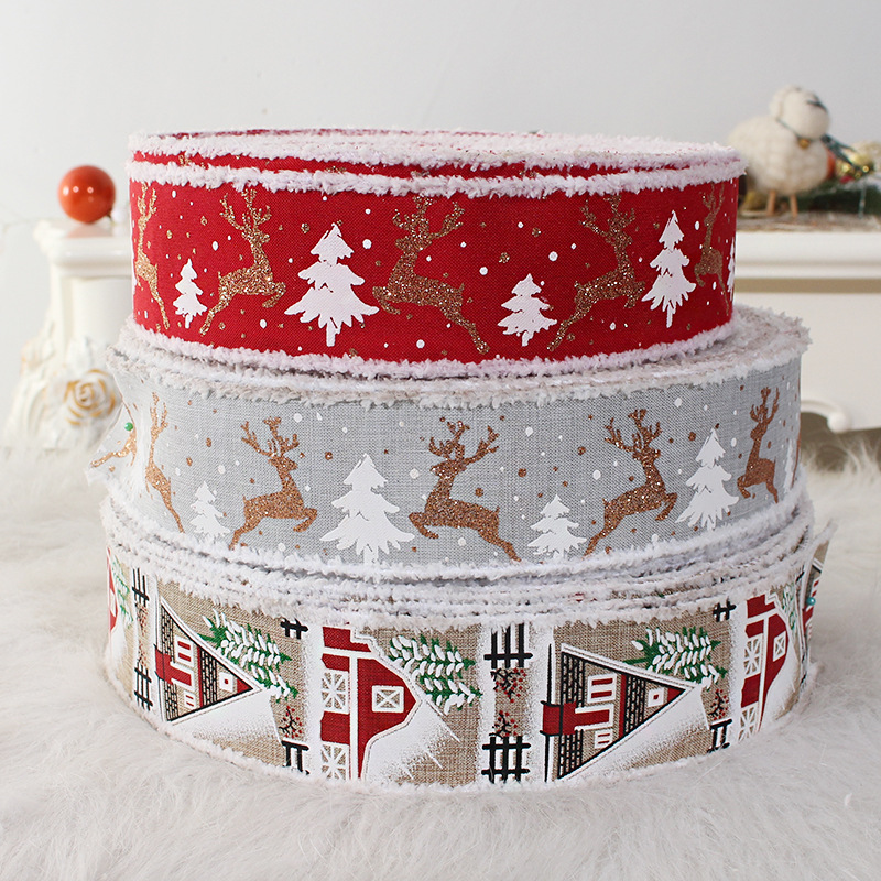 クリスマス装飾品6.5cm * 2メートル麻布白縁リボン手作りdiyアクセサリークリスマスツリー装飾