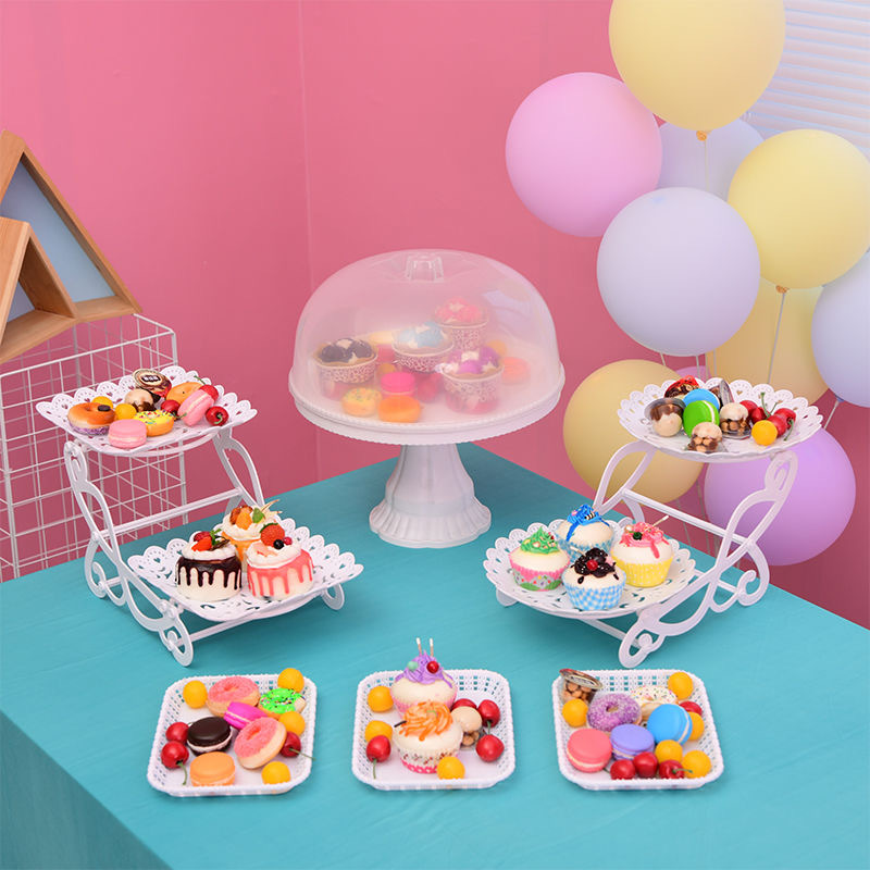 誕生日装飾デザート台展示棚にプラスチックケーキのお菓子のトレー棚を並べます。