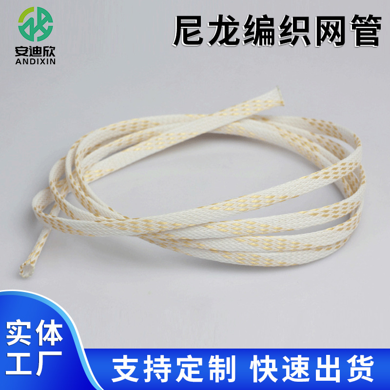 メーカー卸売難燃性編組ナイロンメッシュpetハーネス保護伸縮編組チューブナイロン編組メッシュチューブ