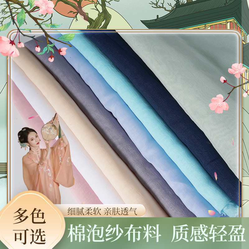 綿の泡の糸の生地の綿の質感の全ポリエステルの小さい泡の女装の子供服の日焼け止めの服の漢服の布地のプリントの刺繍の底部