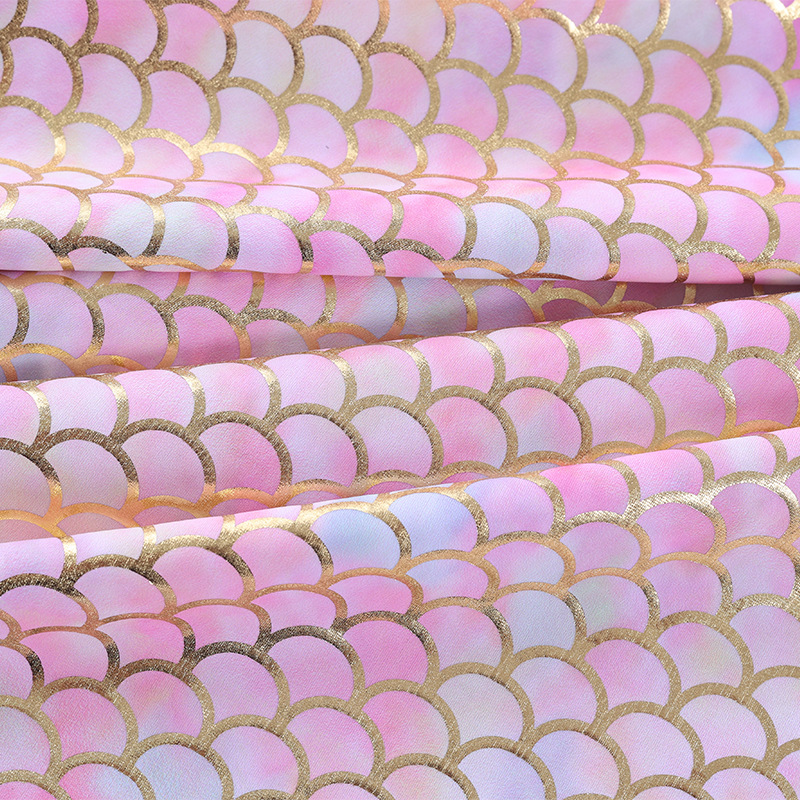 ミルク糸高弾スパンデックスプリント人魚鱗箔押し200g水着ヨガ服玩具靴材生地