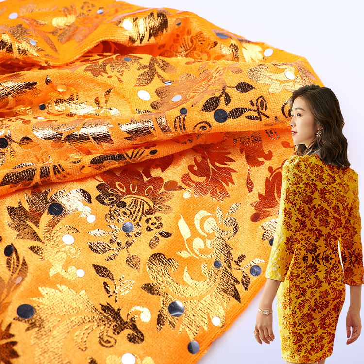 カラフルな鳳尾箔押し生地ポリエステルニット布装飾布生地