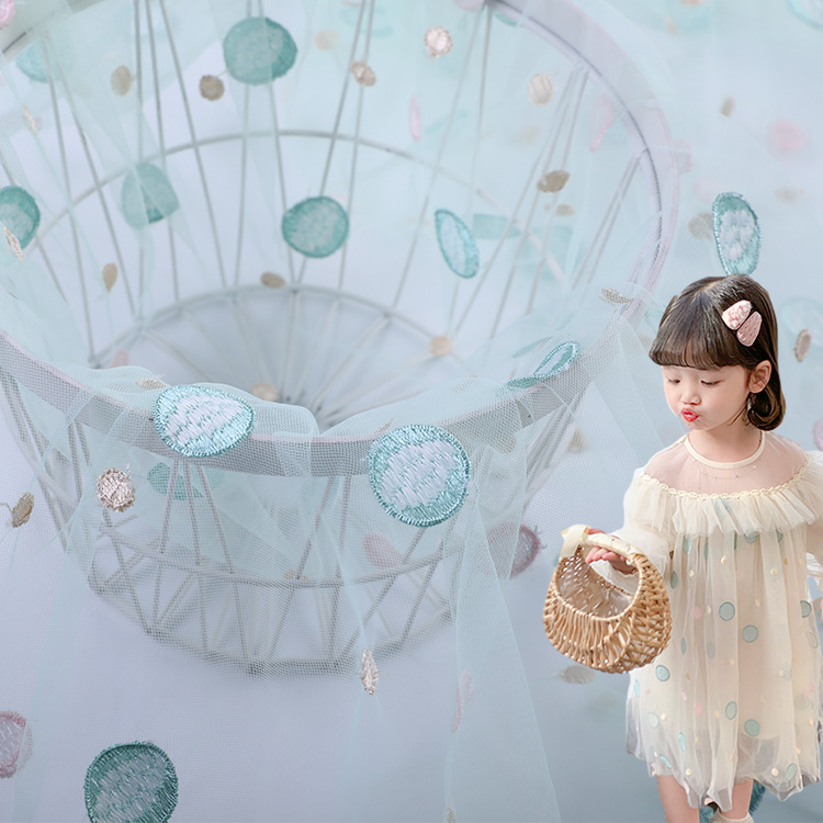 現物暗号化ポリエステル網糸刺繍清新点刺繍生地女装童装ワンピース生地