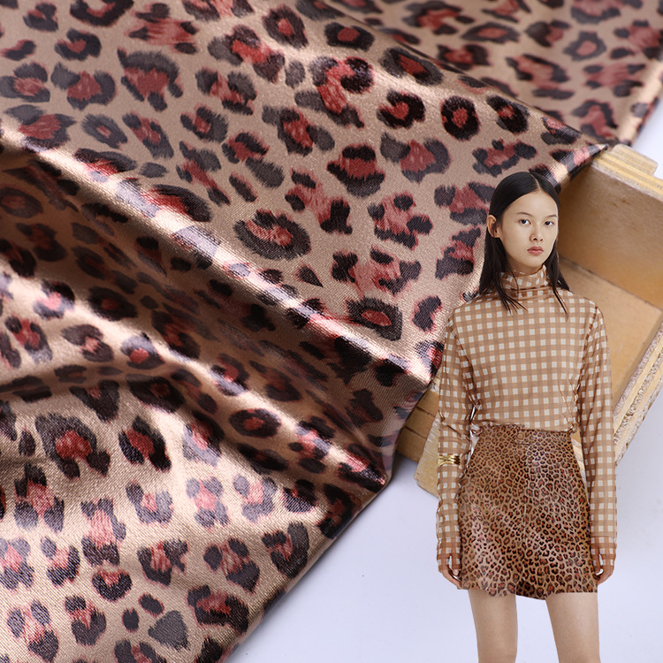 ファッションヒョウ柄生地スパンデックス四面弾箔押しセクシーヒョウ柄スカート上着キャミソールファッション生地
