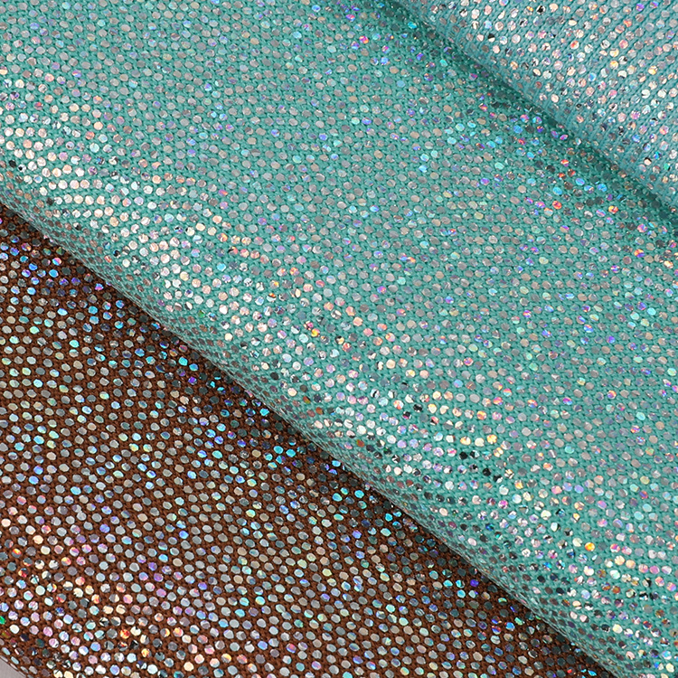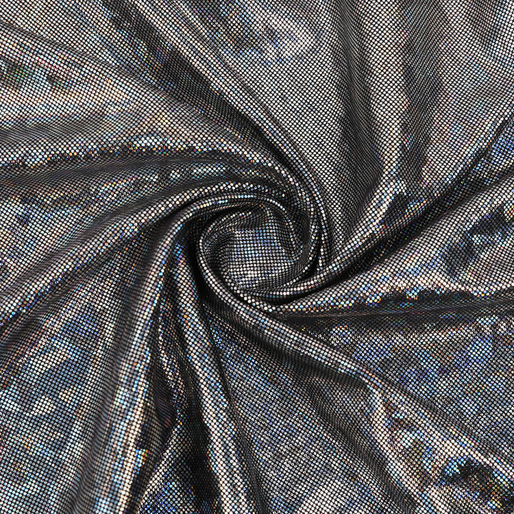 四面弾箔押しスパンデックスガラスの小さな破片レーザーレオタード水着生地-04