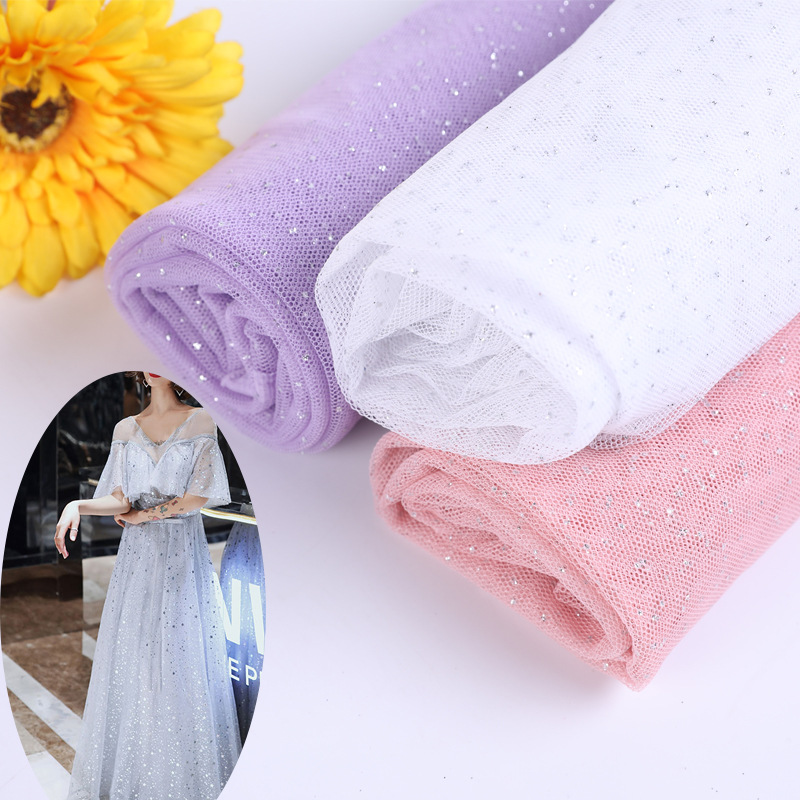 六角メッシュ布経編メッシュ生地散金精練小清新ウェディングドレス生地メーカー