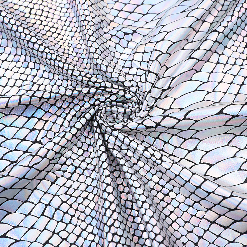 指紋模様レーザーニット生地、舞台衣装、バッグ、ワンピース、日焼け止め服素材、幻彩箔押し