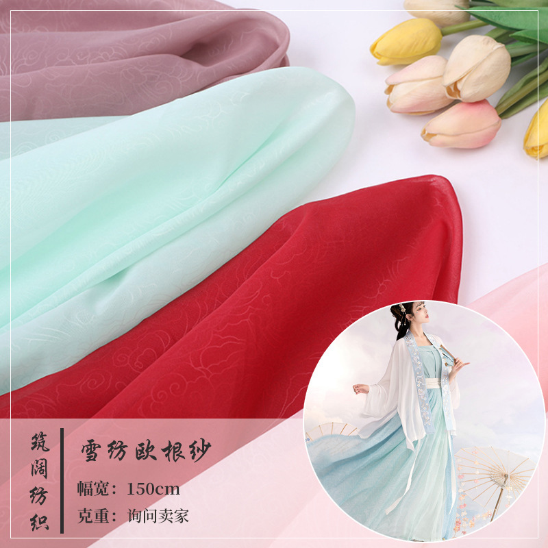 現物超柔雪紡織欧根紗祥雲花型生地漢服古着ワンピース生地
