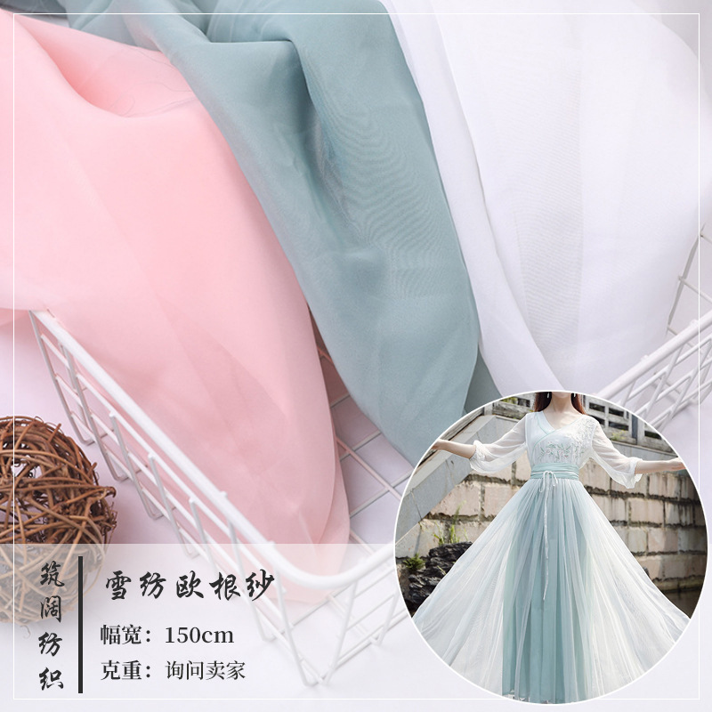 プリント女装生地超柔雪紡織欧根紗生地漢服生地女装シャツdiy生地