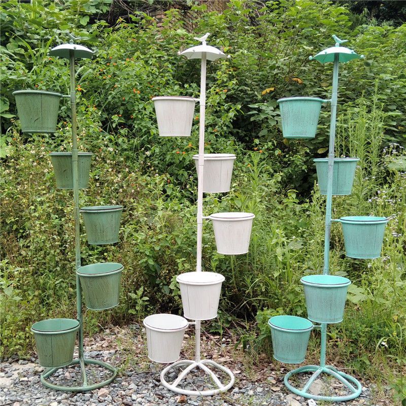 錬鉄製の傘フラワースタンド、5つのバケツを上げて庭を飾る、鳥の鉢の層、バルコニーの部屋の形、屋外の階段、つるの庭の貿易