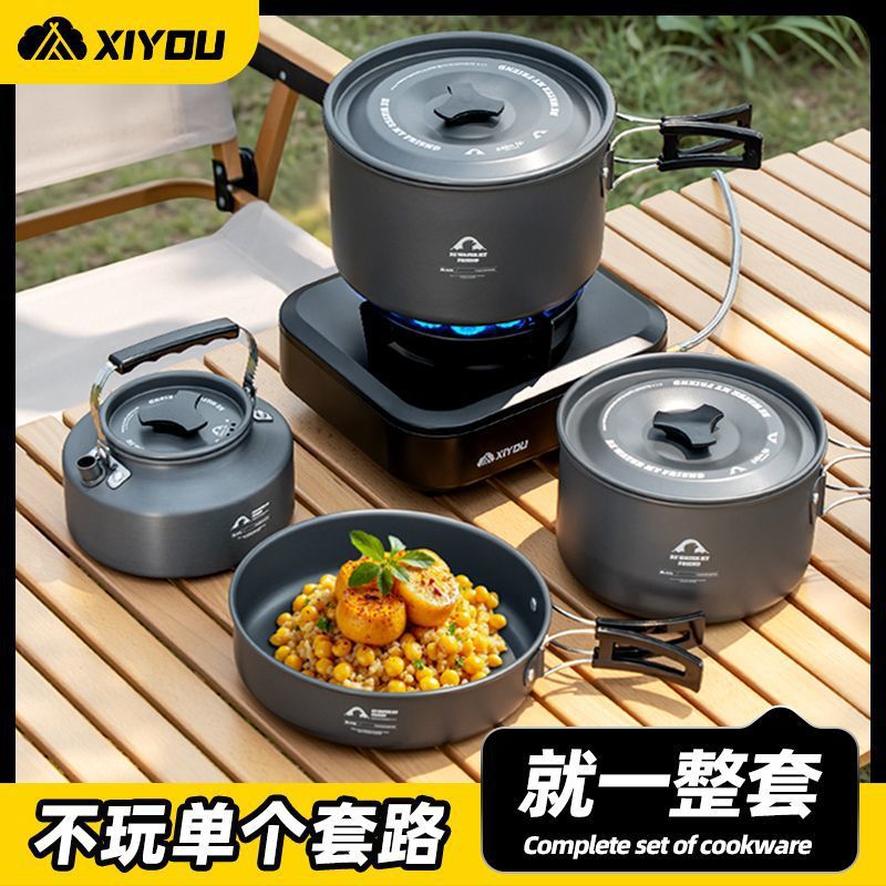 アウトドアキャンプピクニック用品セット、ポット一式、携帯用ケトルセット、アウトドアキャンプ調理器具、旅行用品