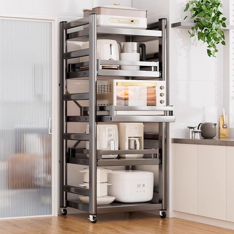 キッチン引き出し式収納ラック床置き多層スリット家庭用多機能収納ラックポットと電子レンジラック用