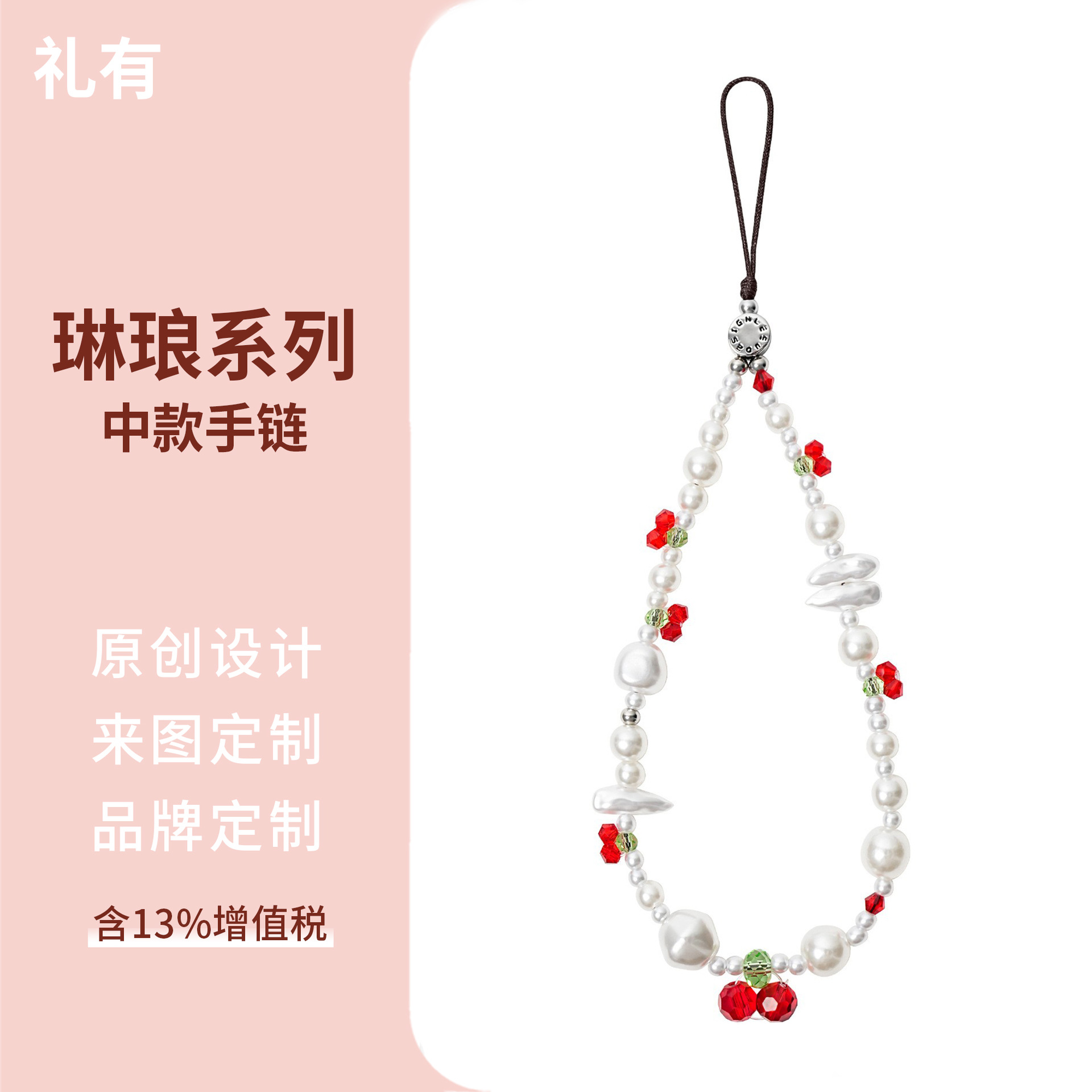 高颜値携帯チェーン白真珠ストラップ短い手首転倒防止チェーン文創礼品カスタムZKE13