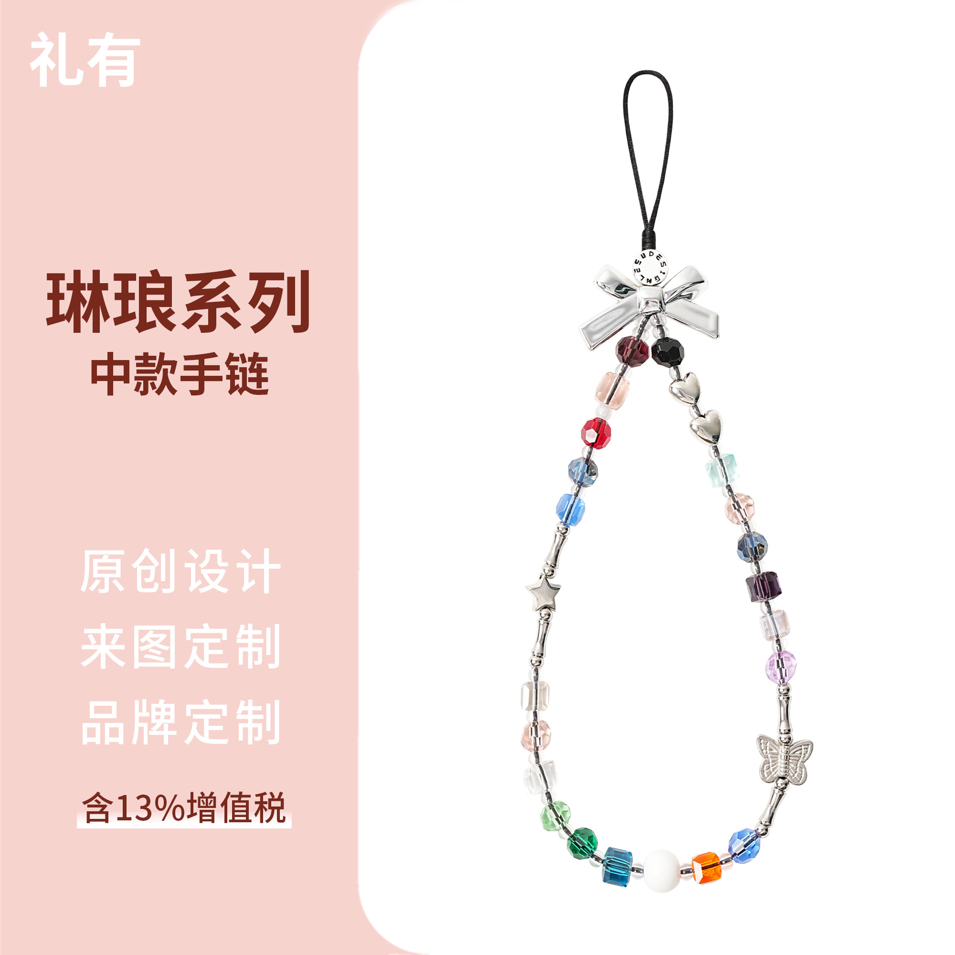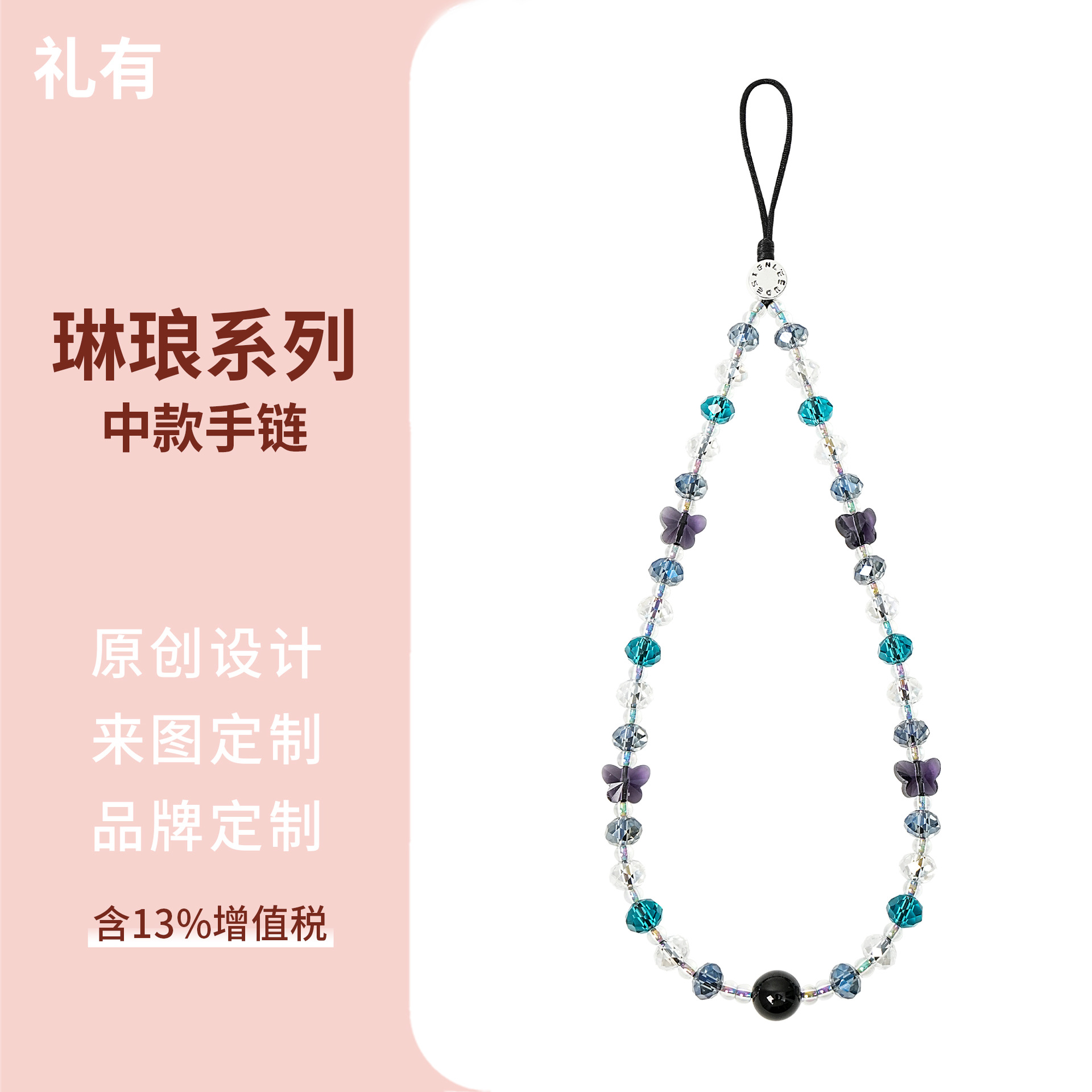 工場直売ビーズ携帯電話チェーンカラー蝶ストラップ紛失防止短手ロープ汎用タイプ携帯ケースストラップZKD1