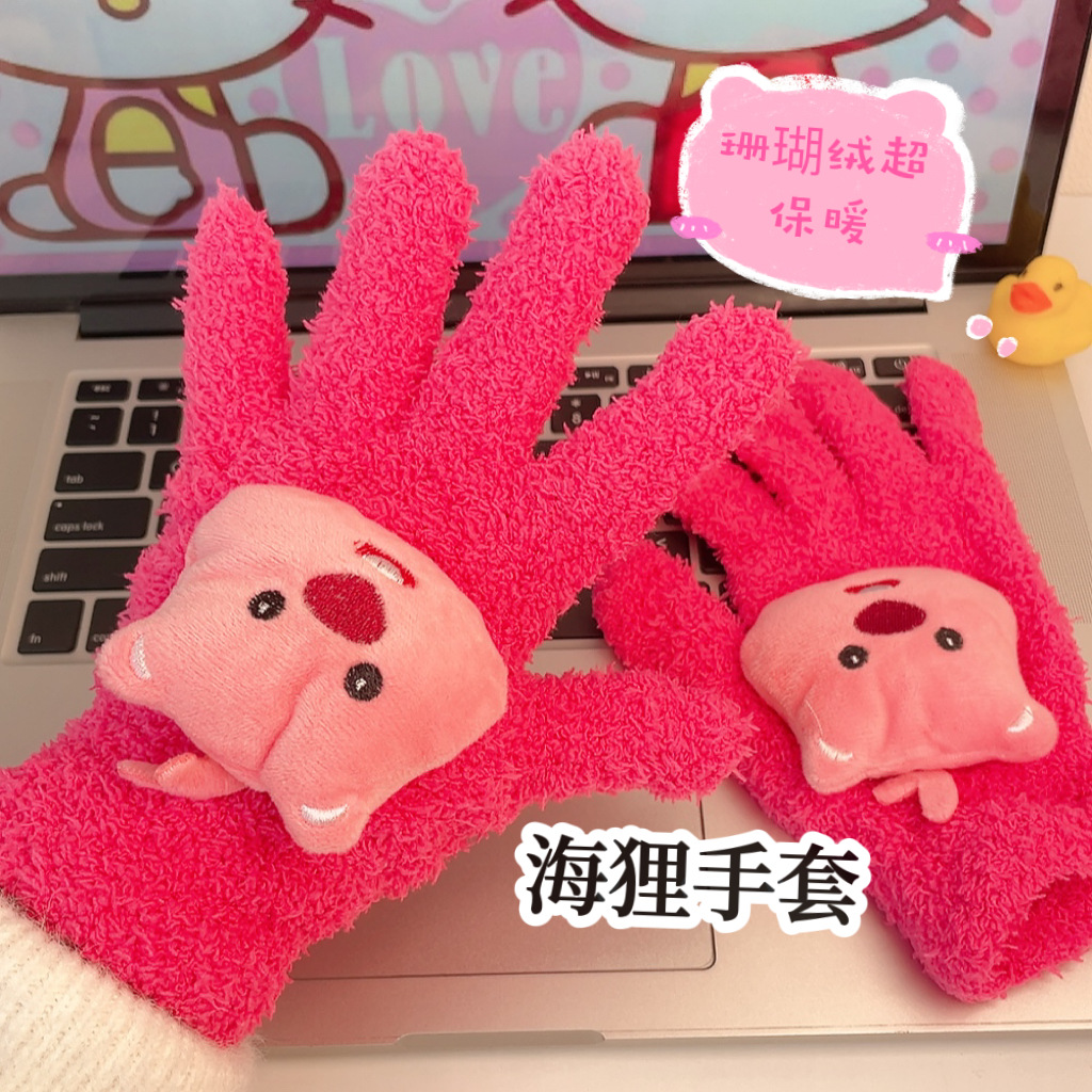 ビーバーloopyかわいい柔らかいモチモチ手袋サンゴのぬいぐるみ学生党少女心騎乗防寒保温