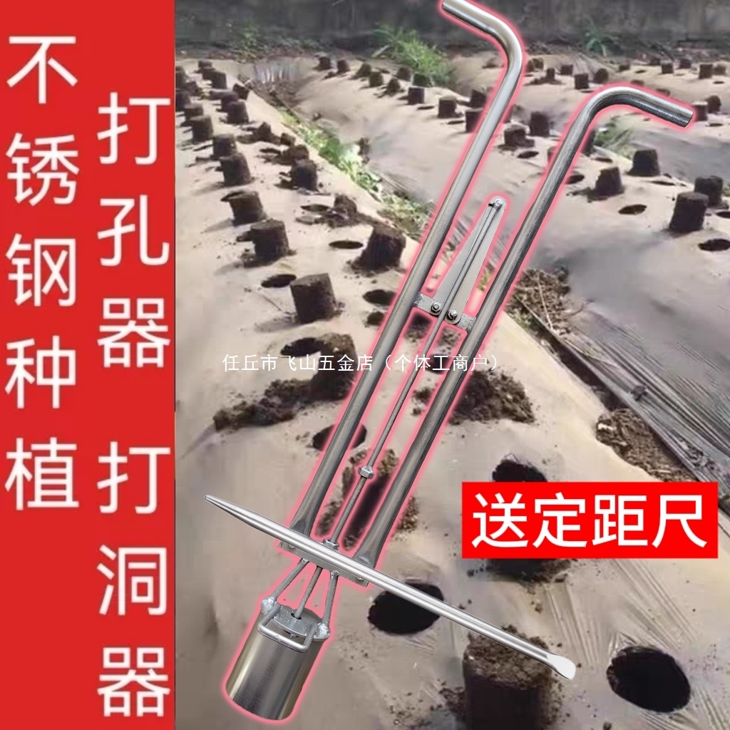 ステンレス製苗植え穴あけ機、穴あけトレイ、苗カップ、穴あけ、土壌破壊、マルチフィルム、ペダル耕運機、増粘機械