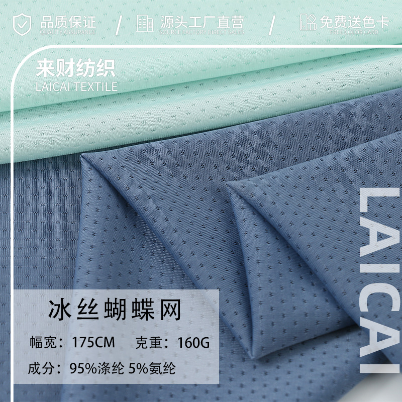 アイスシルクバタフライメッシュ生地 160 グラムポリエステルアイスフィール弾性速乾性通気性日焼け止めスポーツウェアアイスシルク生地
