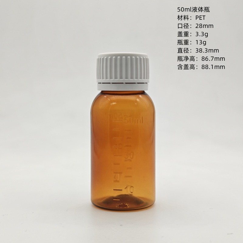 スポット50ml目盛りボトルペット透明茶色液体サンプリングボトル空ボトル詰め替えボトル盗難防止キャップ密封ボトル