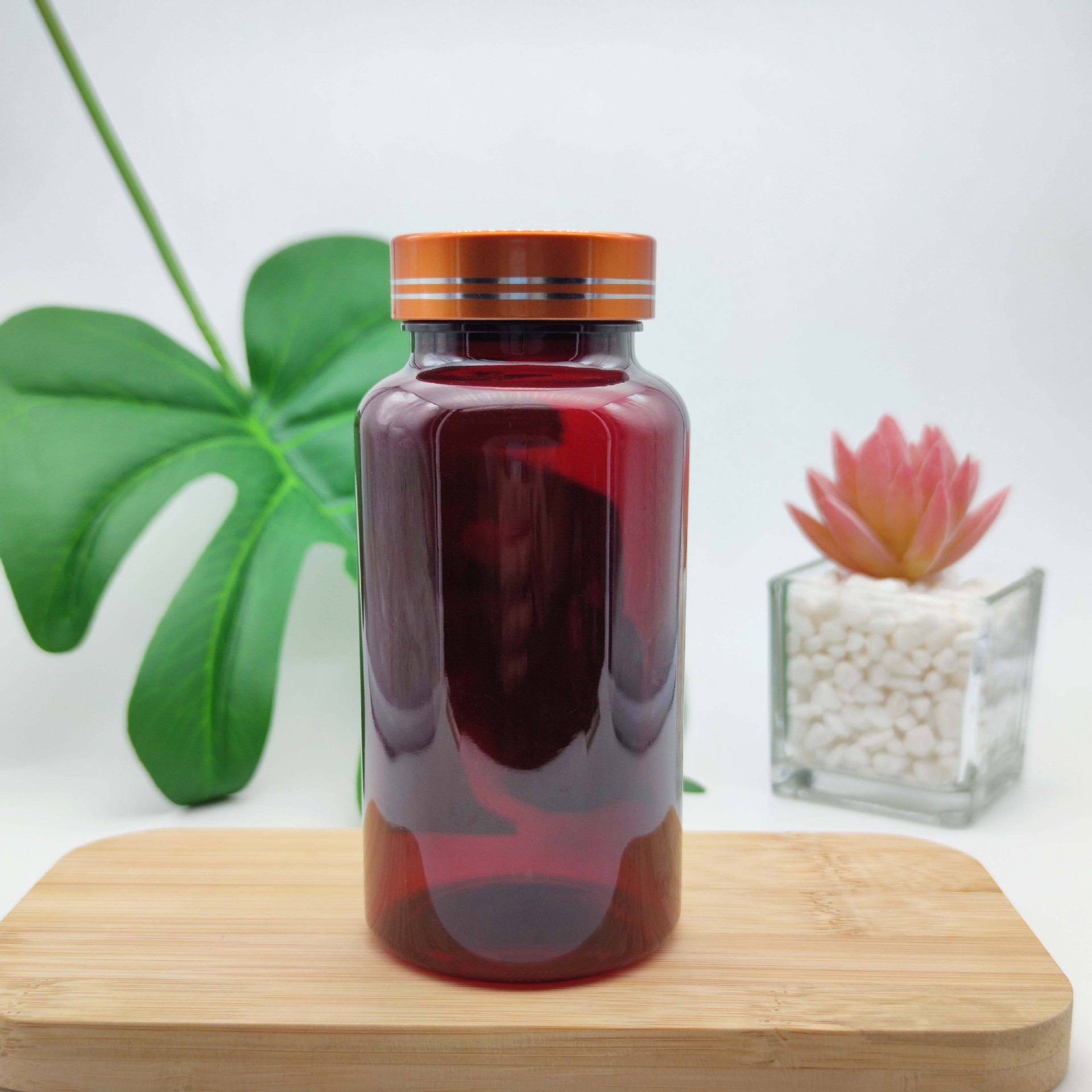Pet直肩二重蓋金銀カプセル魚油瓶透明茶色健康食品ペットボトル