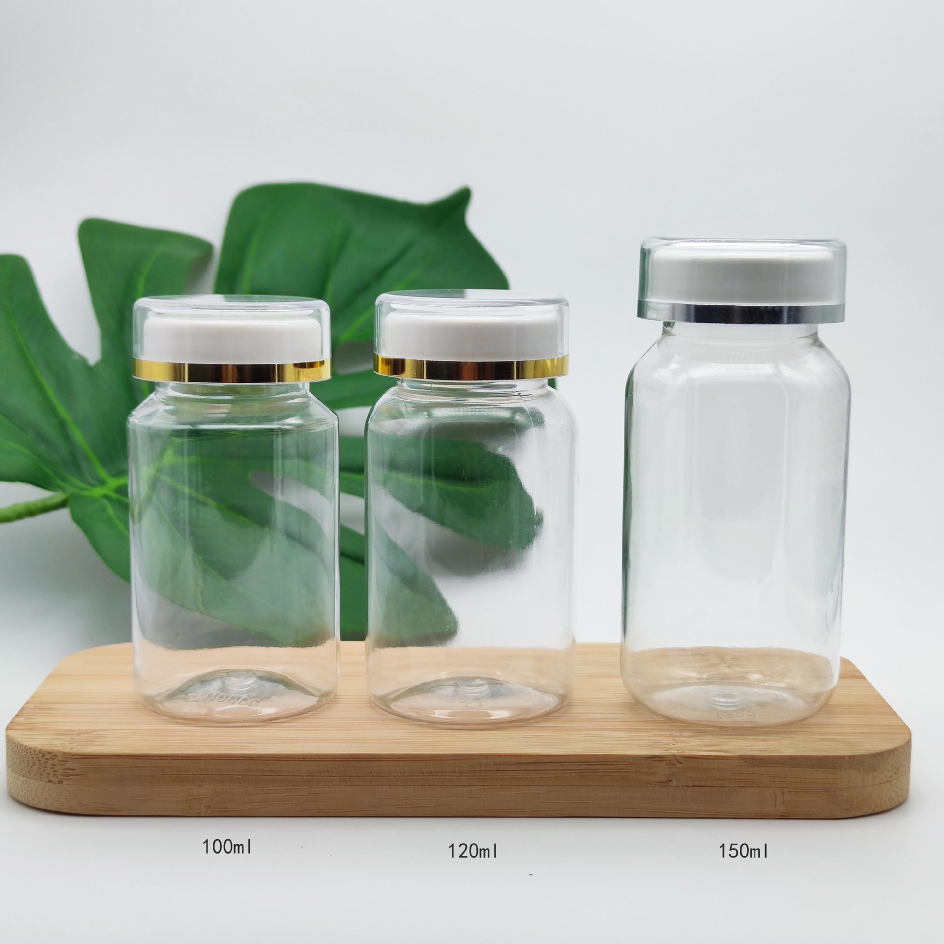 スポット100ml固体透明プラスチック健康食品竹節瓶茶色カプセルチベット紅花食品級瓶