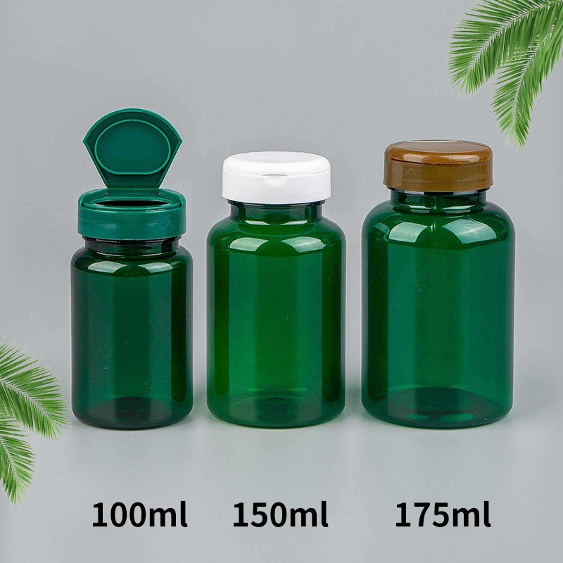 100/150/175ML透明円筒PETプラスチック固体薬品瓶グリーン保健品瓶38口アルミカバー