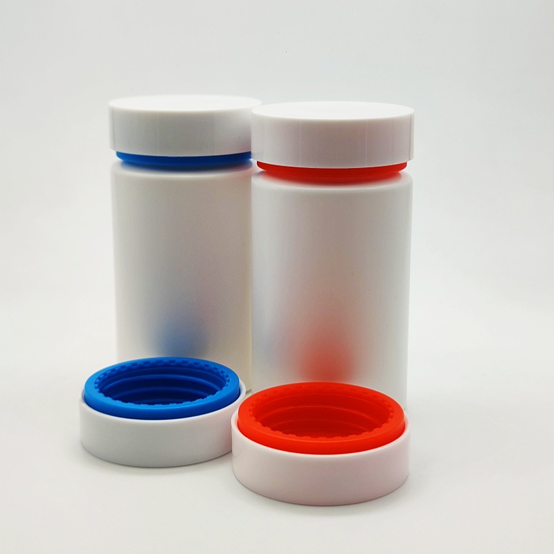 スポット120mlミリリットル2色二重カバープラスチックボトルPE材料食品vcカルシウム錠剤包装ボトル供給