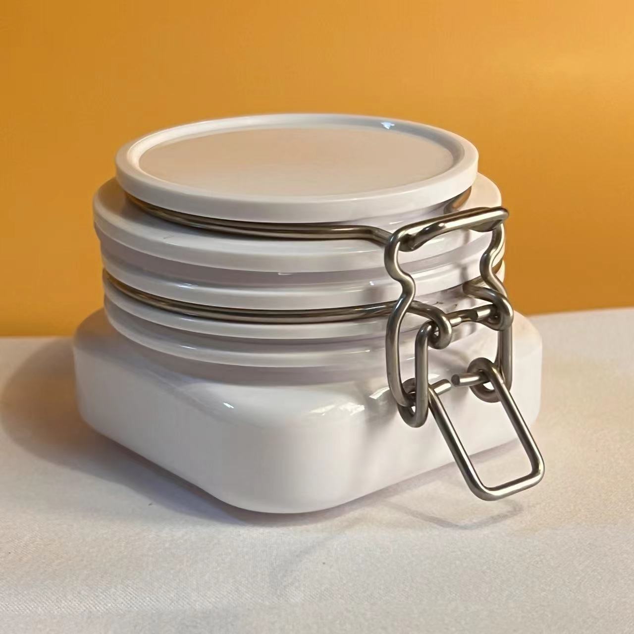 人気120ml角型白色PETバックル密封瓶洗顔クリーム泥膜スキンケア包装缶