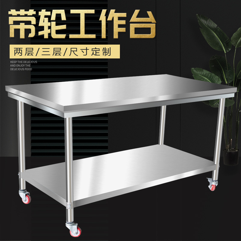 ステンレス製車輪付き二重作業台ホテルキッチン作業台ミルクティーテーブル工具台工場梱包台