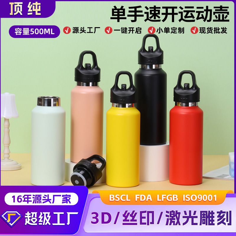 クロスボーダー無ねじ片手開蓋保温カップワンタッチ速開屋外騎行運動水筒304ステンレス