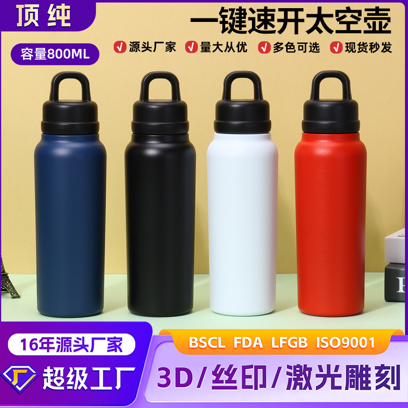 国境を越えた対外貿易のボタンは26オンスの二重ステンレス保温カップの蓋の大容量の宇宙壺のスポーツポットの水筒を開けます。