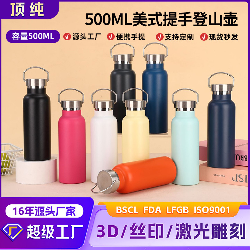 国境を越えたアメリカ式大口保温カップ屋外便利運動水筒ハンドル付き大容量登山ポット卸売り