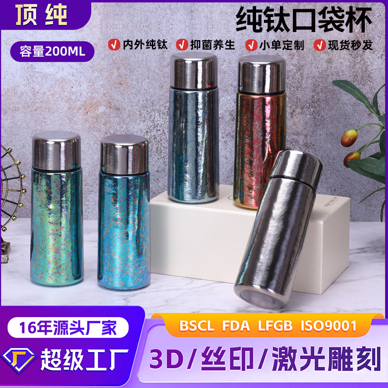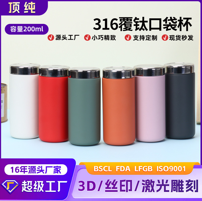 新型316ステンレスチタンコーティング保温カップポケットカップ小型ミニ携帯水筒ギフトカップ卸売